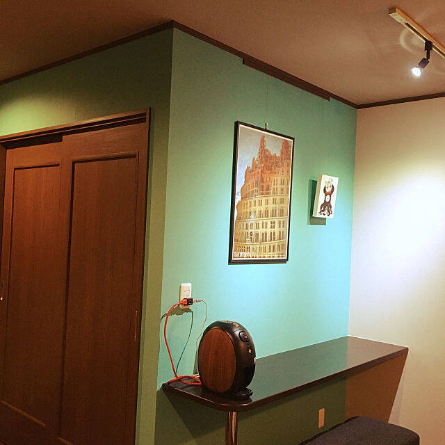 明かりに浮かび上がる「バベルの塔」、かっこいいです!nonnchaさんの思ったとおり、スポットライトのある壁にはピクチャーレールがあるといいですよね。マステで色を変えるというのもグッドアイデアです。お気に入りのコーナーに仕上がって、コーヒータイムが楽しみですね。