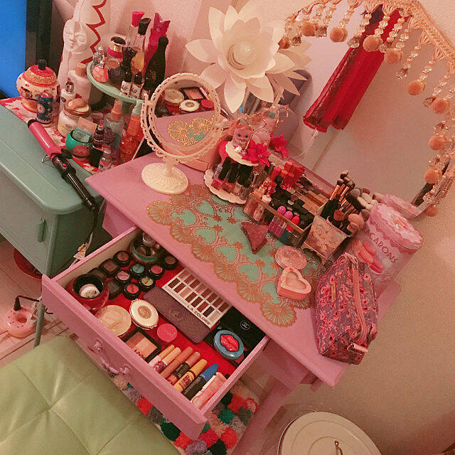 最後はスペース全体のコーディネートにも気を配った、雰囲気抜群のドレッサーを見てみましょう。ミラーやカウンターをDIYしたり、椅子や小物類を厳選したり、ユーザーさんたちのこだわりが詰まっています。