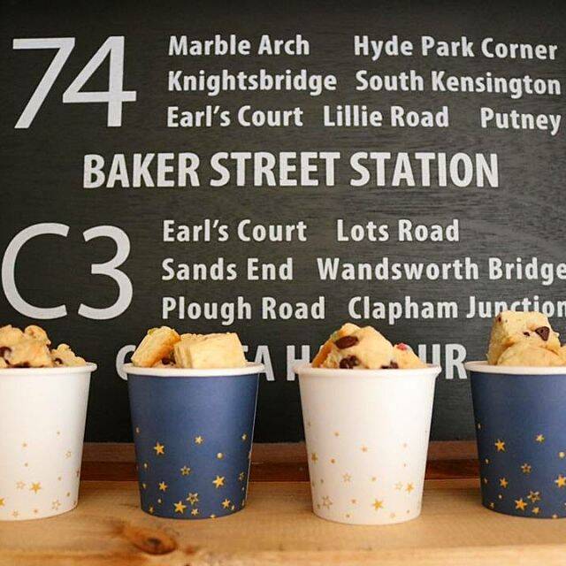 ホワイトとネイビーの紙コップに、たくさんの小さな星がプリントされています。下から上に向かって、星が徐々に少なくなっているデザインがポイント。411.kaoriiiiさんは、ひとくちスコーンを焼いてお友達にプレゼントされたそうです。