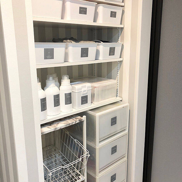 こちらのユーザーさんは、洗面所の収納スペースにボックスを置いて、そこへ脱いだパジャマを置いているようです。ホワイトで統一されていて、見た目もすっきり。銭湯にある脱衣カゴのイメージで使用されているそうです。脱いだものがはっきりとわかって、まとまっているとお洗濯もしやすいですね。