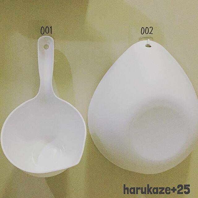 こちらの手桶と湯桶、お持ちの方も多いのでは?ダイソーアイテムで大人気です。シンプル好きにはたまらないデザインはもちろん、持ち手に穴が開いているので、使わないときにフックでぶらさげておくこともでき、ヌルヌル対策までばっちり考えられている優秀アイテムです。