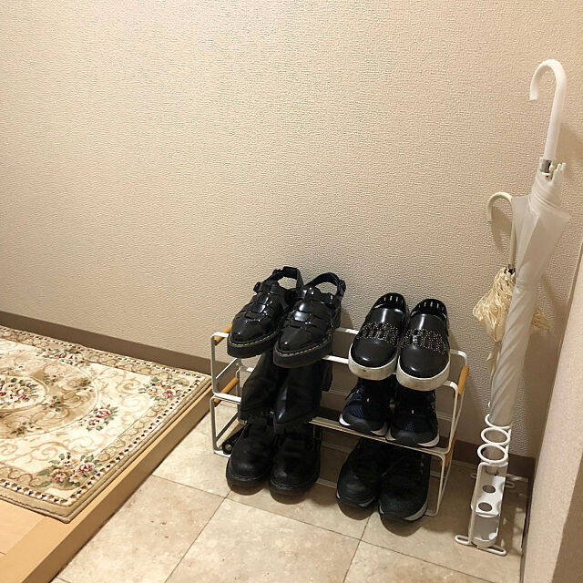 一人暮らしのユーザーさん宅では、ホワイトのシューズラックとスリムな傘立てを並べて使われています。靴も傘も厳選してすっきりと並べられていて、スムーズにお出かけできそうですね。傘立て・ブリルはスリムですが、4本の傘を立てることができて、玄関スペースを有効に使えます。