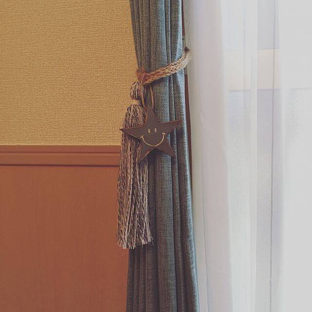 こちらのユーザーさんは、カーテンタッセルを手作りされています。スターの小物がタッセルのポイントに。シンプルなカーテンが、おしゃれに装飾されていますね。きれいなお部屋の雰囲気を作るには、インテリアに合うような小物や材料を選ぶことがポイントです。