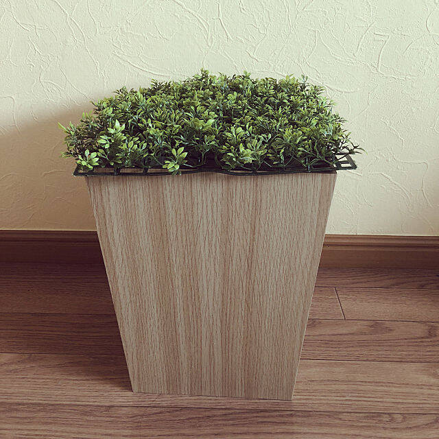hapaさんは、ダストボックス・スクエアウッドを使われています。ライトブラウンはナチュラルな木目調、幅23×奥行23×高さ28cmとコンパクトサイズです。フェイクフラワーをフタにしたGOODアイデアで、お部屋のインテリアになっていますね♡