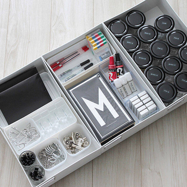 まず最初に見ていきたいのが、引き出しの中にステーショナリーを収納しているユーザーさんたちの実例です。上手に引き出しを仕切って、細かなアイテムもわかりやすく分類し収納しています。整理整頓のための、モチベーションがあがりそうな実例をご紹介します!
