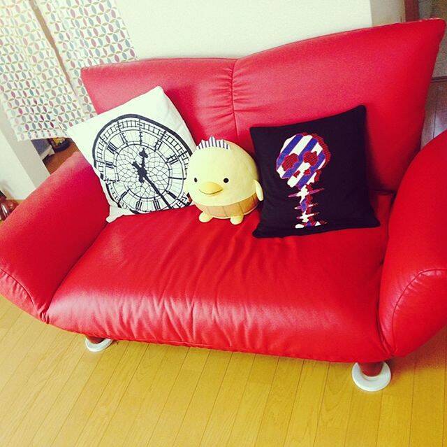 ニトリのローソファは、豊富なカラーバリエーションから、自分好みのカラーを選ぶことができることが人気の理由のひとつ。こちらのユーザーさんは、真っ赤なニトリのローソファをチョイスしています。お部屋のアクセントになるカラーですね。ポップなクッションカバーともよく合います。