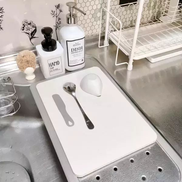 こちらの実例で使われているのは、ダイソーの珪藻土水切りマット。吸水性の高い珪藻土が素材になっているので、水切りのよさは抜群のようです!このサイズで300円というお手ごろ価格なのも、うれしいポイントです。