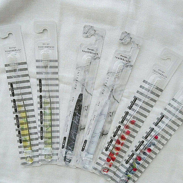 大理石柄にフルーツ柄と、他にはないデザインがおしゃれなセリアの歯ブラシ。透明感があるので柄入りでも主張しすぎず、清感な印象です。100円とは思えない高見えデザインで、洗面所のインテリアを上質なものにしてくれそうですね。