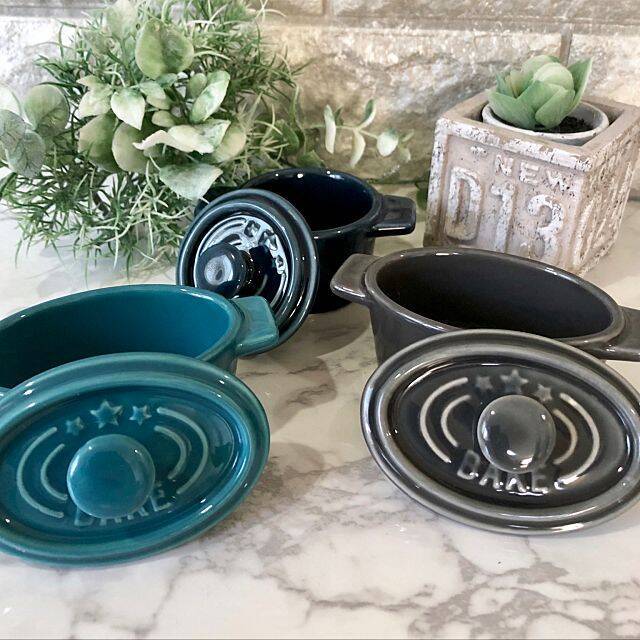 100均にはマグ類だけでなく、ココットやグラタン皿だって充実しています。直接オーブンに入れて調理するのはもちろん、盛り付けのお皿として使ってもOK。フッ素加工や蓋つきなど実用性の高いアイテムも、100均で手に入れることができますよ。