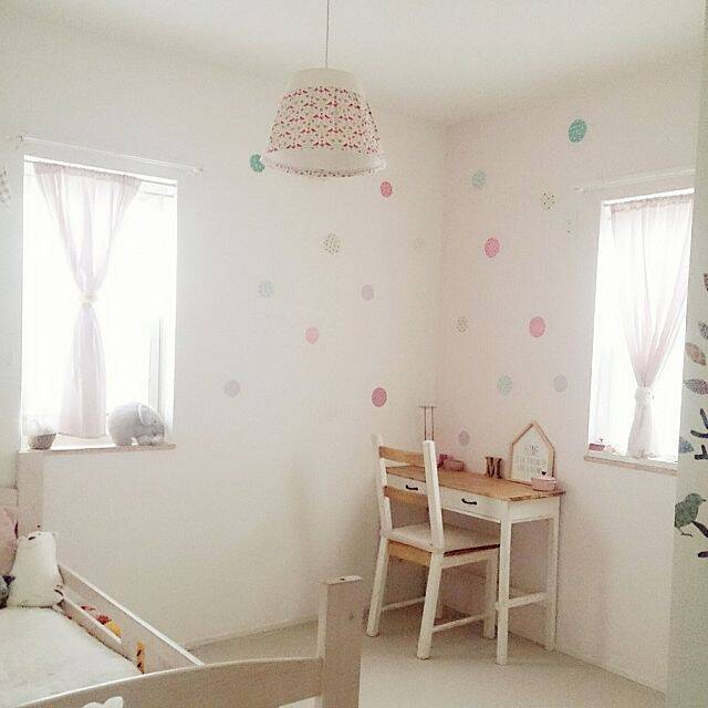 マスキングテープを利用して、パステルカラーのドット柄で壁をデコレーションしている、こちらのユーザーさん。ランダムなドット柄は、貼るのが簡単なので不器用さんにもおすすめ。ランダムな大きさや色・柄を選べばポップで楽しい雰囲気になり、キッズスペースの壁面アレンジにぴったりです。