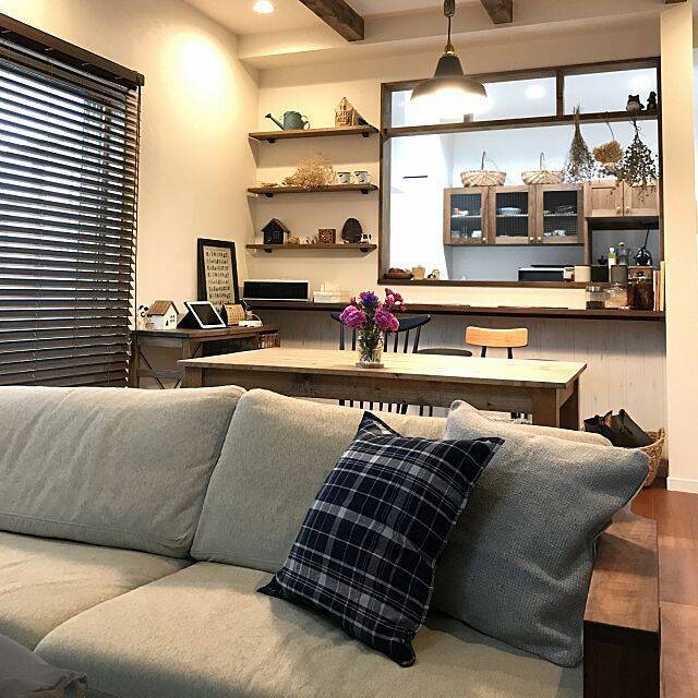 こちらのユーザーさんは、モダンなカリモクのソファに無印良品のオーガニックコットン手織クッションカバーを合わせています。ソファを主役にしたシンプルで引き締まった空間には、潔くシンプルなクッションを合わせるのがベスト。主張しすぎない存在感で、お部屋や家具を引き立たせる、引き算的な使い方です。