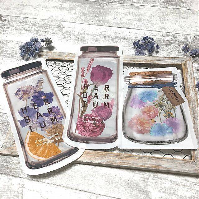 セリアのギフトバッグを購入したユーザーさん。こちらは食品を入れることもできるのだそう。お菓子の持ち歩きやちょっとしたおすそ分けにも使えそうですね。上品なハーバリウム柄にはうっとりしてしまいます。ユーザーさんは、ドライの果物を入れることも検討しているそうです。