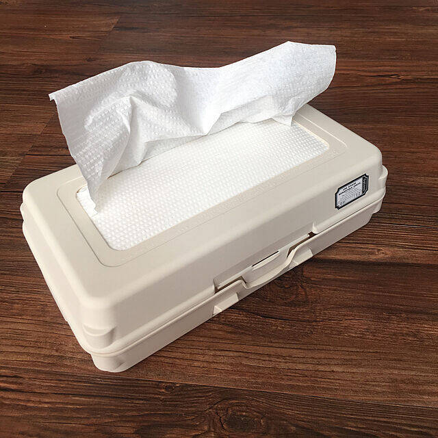 お客様用にと、洗面所やトイレなどでは置き型を使う方が多いかもしれません。ホルダーやケースに入れてあれば見栄えもいいですね。まずは、ティッシュケースのような置き型ケースに入れて使うタイプや、100均のアイテムを使ってキッチンペーパーやペーパータオルを使用している実例をご紹介します。