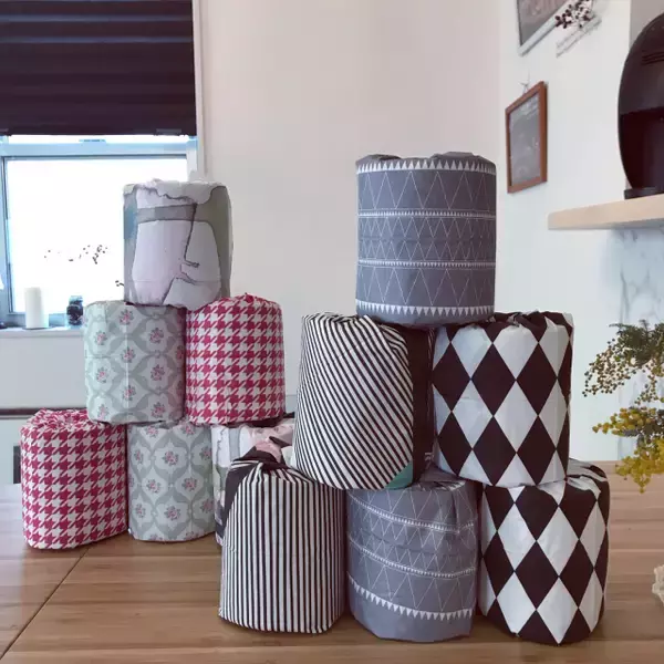 Satokoさんは、IKEAのペーパーナプキン6種類でトイレットペーパー保管計画を実行!まるで布で包んだように、しなやかにラッピングできています。モノトーンでシンプルな柄と、花柄や明るいカラーを分けて……オブジェのような仕上がりになっています♡