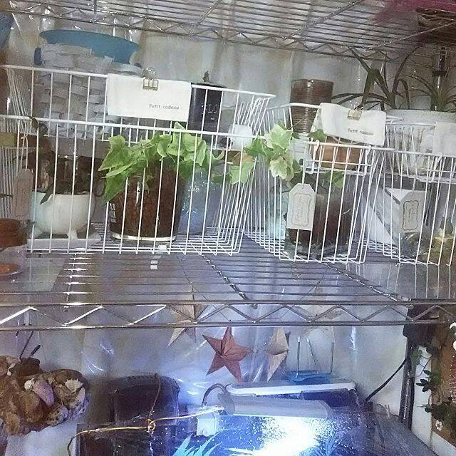ぷっくりとした姿が可愛らしい、多肉植物が勢ぞろい。ダイソーのワイヤーバスケットにきっちりと収まって、見ているだけで癒されます。シンプルなワイヤーアイテムは、センスのよいコーナーには欠かせません。