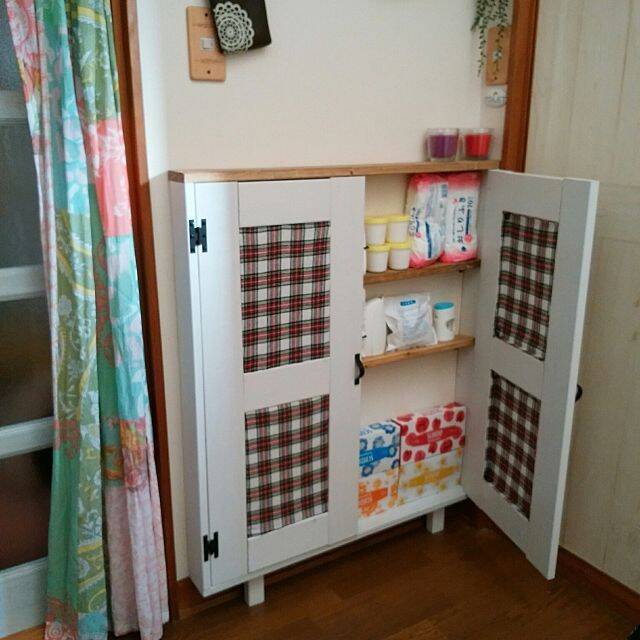 トイレの脇のわずかな壁に作られた棚は、しっかりと扉もついて見映えも◎です。奥行きが浅くても毎日使う消耗品をたっぷりと収納してくれる、頼れるスペースが生まれています。生活の動線上に、うれしい収納棚ですね。