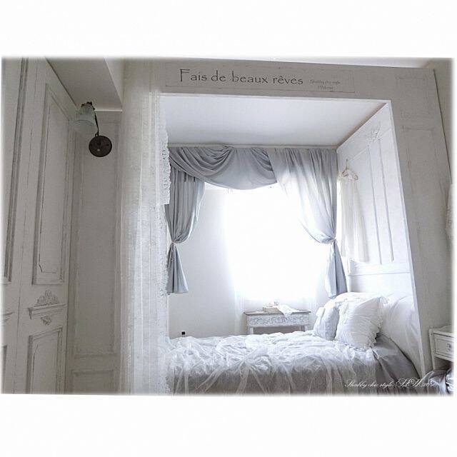 広々とした寝室もいいけれど、壁で囲まれた個室感があると安心できる方もいるのではないでしょうか?hmroseさんは、なんと寝室の中に、お部屋のような空間をDIYで作ったのだそうです。ホワイトインテリアのロマンティックな寝室は、自分だけの世界に浸りながら眠りにつけそうですね。