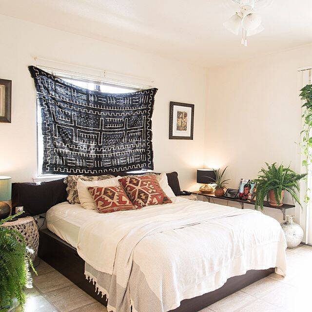お部屋にグリーンがあると癒されますよね。そんなグリーンの癒し効果を寝室にもぜひ取り入れてみましょう。こちらのボヘミアンテイストがステキなfreakycatさんの寝室には、グリーンが散りばめられていて、ナチュラルな雰囲気たっぷりな居心地のよさそうな空間になっています。