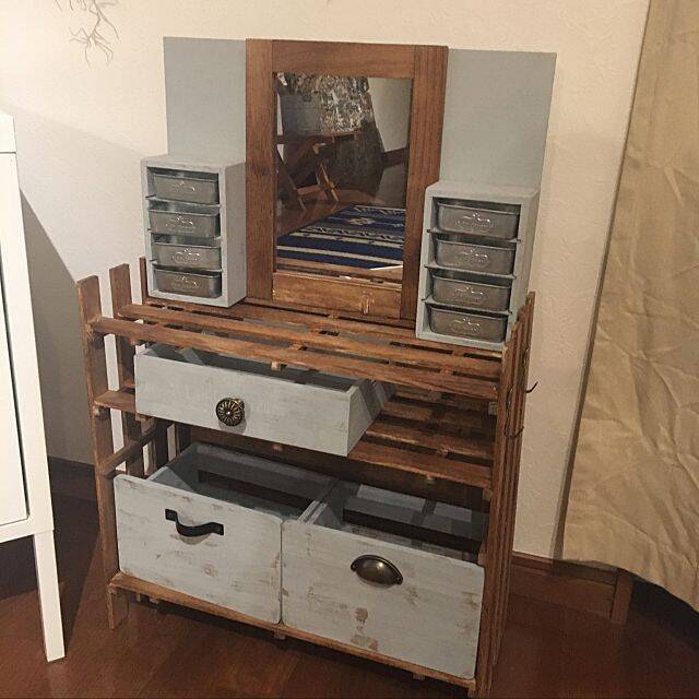 まずご紹介するのは、高さが低めな、小さなドレッサーの実例です。身近なショップで手に入りやすい素材を使い、気軽にドレッサーDIYを楽しんでいるユーザーさんたちです。さっそく見ていきましょう。