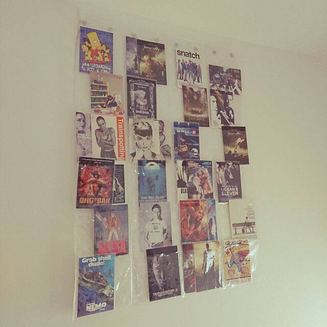 ユーザーさんはウォールポケットに映画のポストカードを入れてディスプレイされています。透明のものを使うと、たくさんポストカードを並べても圧迫感を感じさせませんね。ポケットに入れるだけなので、差し替えが簡単に行えます。