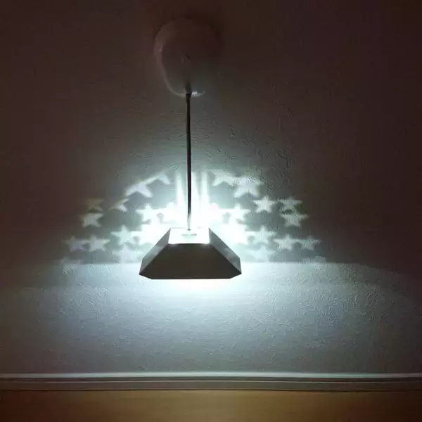 コーヒーフィルターホルダーの向きに注意してください。接着する角度がポイントになります。斜めに接着することで、コーヒーフィルターホルダーの星を、壁に写し出すことができます。グルーガンで接着する箇所には、メルトスティックを多めに使用すると取れにくくなります。執筆:RoomClip mag 編集部