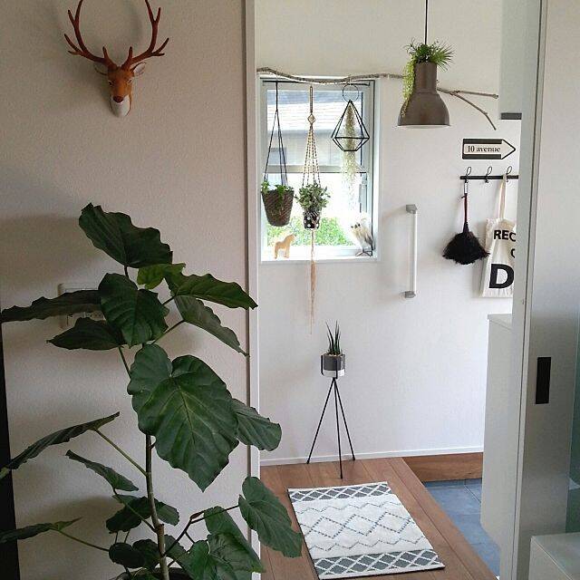 まずご紹介したいのは、グリーンを飾って玄関を明るくさわやかな空間に演出しているユーザーさんの実例です。湿っぽく暗くなりがちな玄関、グリーンで一気に雰囲気アップを図りましょう♪