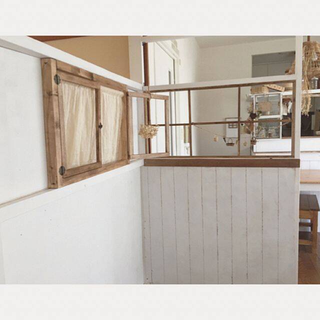 こちらのお部屋では、ディアウォールで立てた2本の柱に板を張り付けることによって、お部屋を仕切るパーテーションを設置されています。ただ壁を作るのではなく、小窓を取り付けることで、カフェ風の優しい雰囲気に♪お部屋の好きな場所に小窓を取り付けられるのも、ディアウォールだからこそできる技ですよね。
