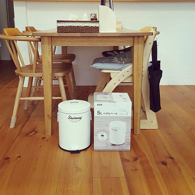naeさんはニトリでペダルペールをゲットされています。丸いフォルムといい、質感、ロゴも可愛らしく、北欧テイストでまとめられているnaeさんのお家にしっくり馴染んでいます。1000円以下のお値段だったそうですが、作りもしっかりしていて、納得のお買い物ですね。