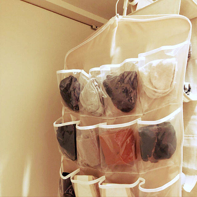 はじめにご紹介するのは、スペースを取らない「靴下の吊り下げ収納」です。コンパクトにまとまりながら見た目もよい、ユーザーさんのさまざまなアイデアがいっぱいです。