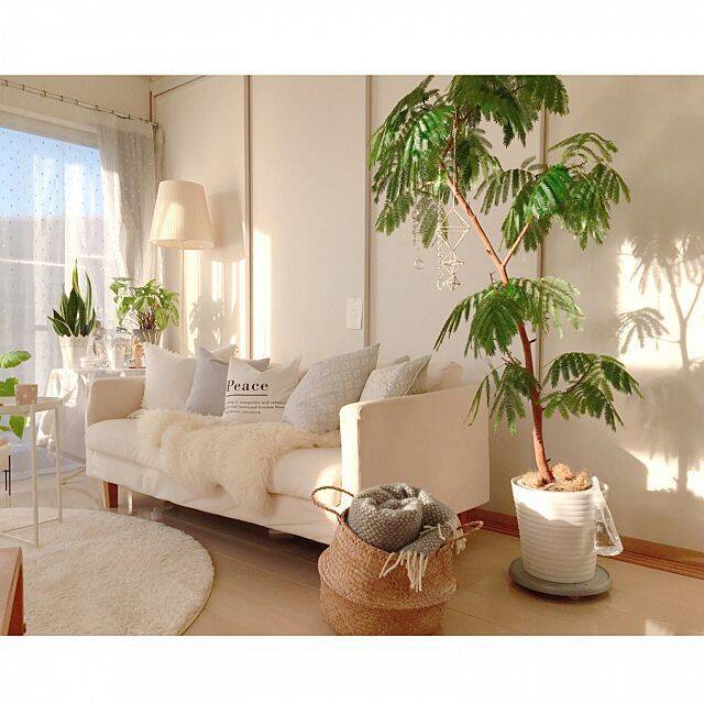 イケアのシーグラスバスケットは天然素材なので、Rさんのようなナチュラルテイストのお部屋と相性抜群です。ホワイトを基調にまとめられているので、バスケットが映えてみえますね。横の観葉植物ともバランスよくコーディネイトされています。