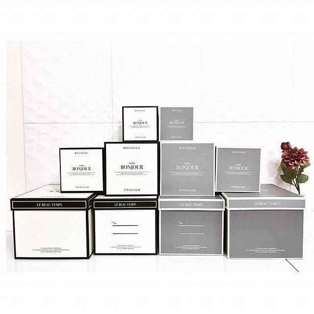 MallonSnowさんは、こちらのシリーズのペーパーボックスをコンプリートされました。オフホワイトベース×ブラックとグレーベースにホワイトのペーパーボックスは、どちらもモノトーンインテリア好きさんやシンプルなテイストが好きな方にぴったりですね。ボックスに書かれたフランス語も洗練された雰囲気です。