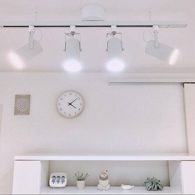 はじめにご紹介するのは、無印良品のスポットライトです。天井や壁になじむ真っ白な照明は、白を基調としたMerrydayさん宅のインテリアを引き立ててくれていますね。照らしたいところに合わせて向きを変えられるのもスポットライトの良いところです。