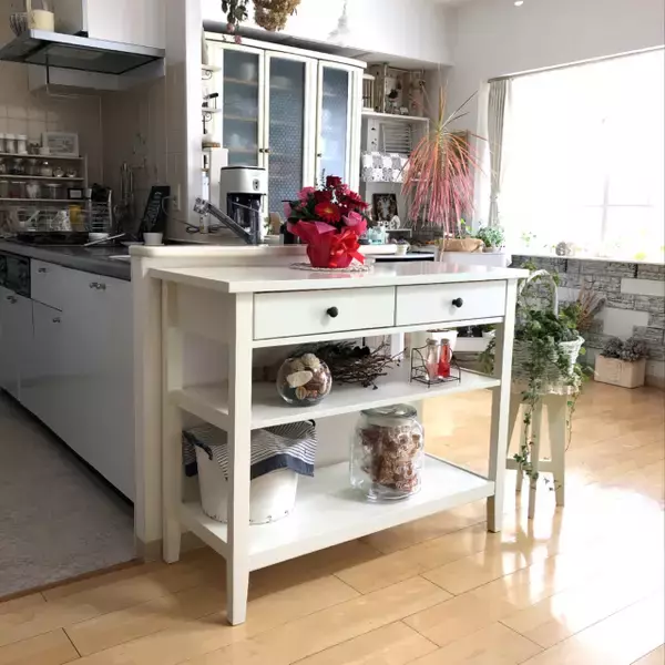 ここでは、キッチンまわりで使えるテーブルをご紹介します。キッチンのそばで食事の準備や後片付けのサポートをしてくれたり、カウンターや棚のような役割になってくれたりと、とても便利に使えるようです。ユーザーさんたちの取り入れ方や配置のしかたは、参考になりますよ。