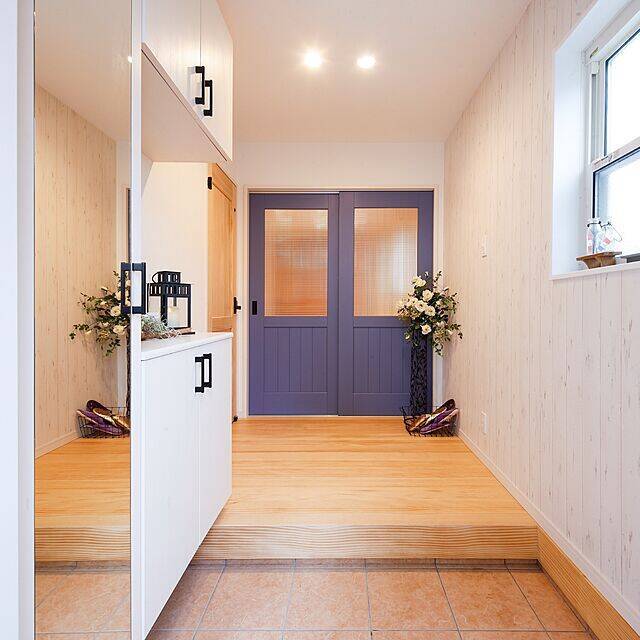 まずご紹介する4つの玄関は、おしゃれなドラマや映画を彷彿とさせる実例たちです。高級感・非日常感があふれ、お家の中にいるのになんだかワクワクしてきそうですね♪ さっそく実例を見ていきましょう。