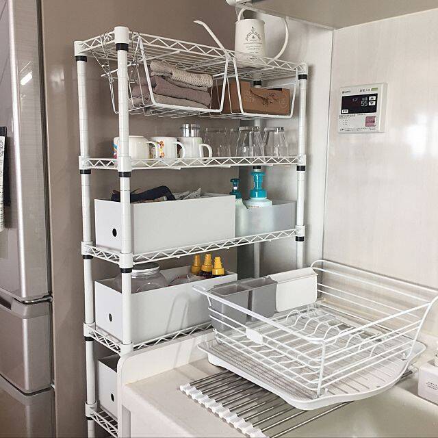 料理をするキッチンは、便利で使いやすくしておきたいところですね。すきまを大容量の収納に活用したりと、おうちに合わせて置けるラック収納が活躍してくれますよ。まずは、キッチンでラックを使っているユーザーさんの実例からご紹介します。
