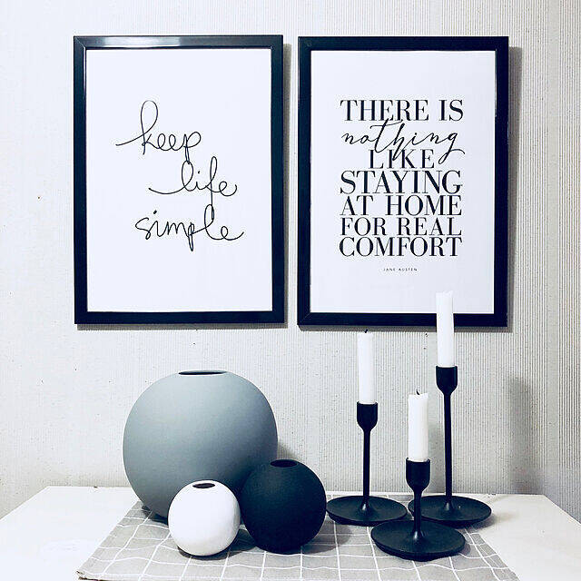 ホワイトとブラックの対比が美しいコーナーに置かれた、キャンドルホルダー。階段状の形が特徴的で、アーティスティックなコーナーによく似合う存在感があります。物を飾りすぎずに余白を残すことで、ディスプレイしているもの一つ一つが引き立てられていますね。
