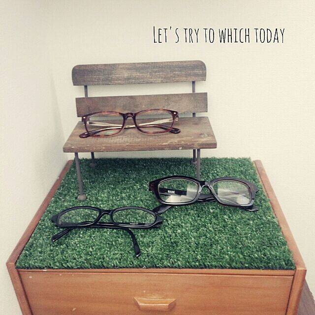 こちらは、洗面所のチェストの上に人工芝を敷いて、めがね置き場にしています。芝生にベンチがあればとたんに公園風に!洗面所は細かいものが多いですが、めがねの指定席を作ってあげれば探さなくて済みますね。
