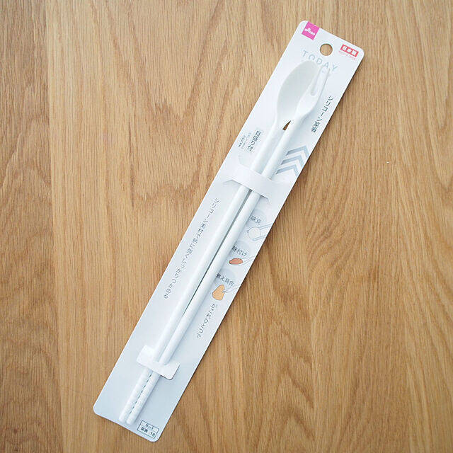 菜箸の先に固まった卵がついて洗いにくいのが悩みだったという、kujira.さん。ダイソーのシリコーン菜箸を購入し、ストレスを解消しています。味見、味付け、煮え具合のチェックができる優れもので、シンプルなデザインも魅力です。