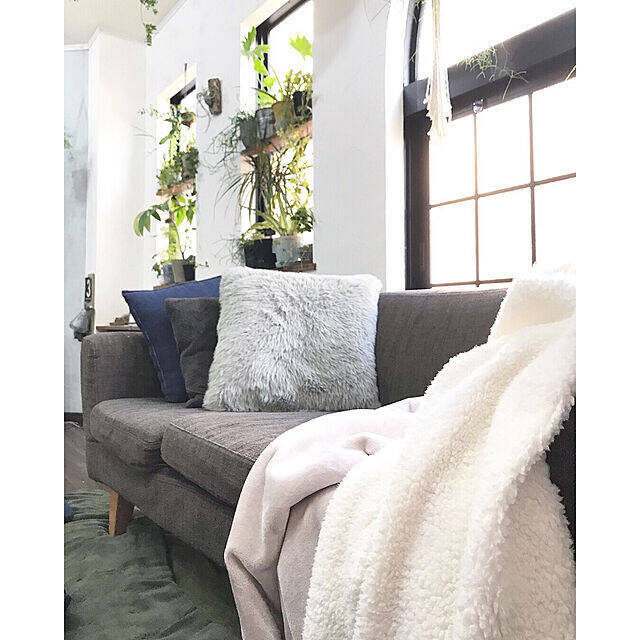 ふわふわとした心地よさそうな質感が写真からも伝わってくる、コストコのブランケットです。クッションカバーやラグも触り心地にこだわっておられるようで、リラックスした時間が過ごせそうな空間ですよね。大判サイズのブランケットで体を包むことができ、ほっこりと温められそうです。