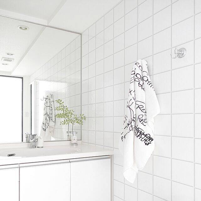 こちらの実例では、ホワイトをメインにしたコーディネートにシルバーやブラックを混ぜて都会的な洗面所を実現しています。洗面台のタオルはシルバーのワイヤーバスケットに入っていて、雰囲気もぴったりですね。おしゃれなだけでなく清潔感も満点です。