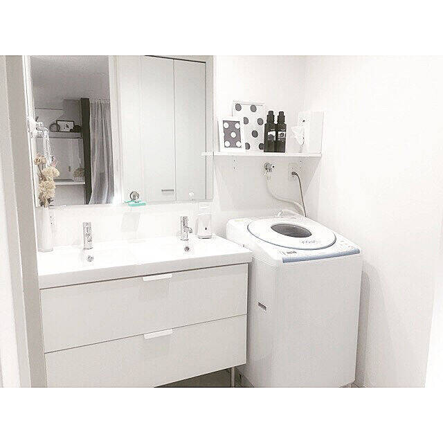 洗面所を広く明るく見せるのに、ホワイトインテリアはぴったりのアイデアです。そんな清潔感あふれる洗面所を4つ、最後にご紹介します。表に物を置かないよう整頓され、全体を白で統一した空間に注目ですよ。
