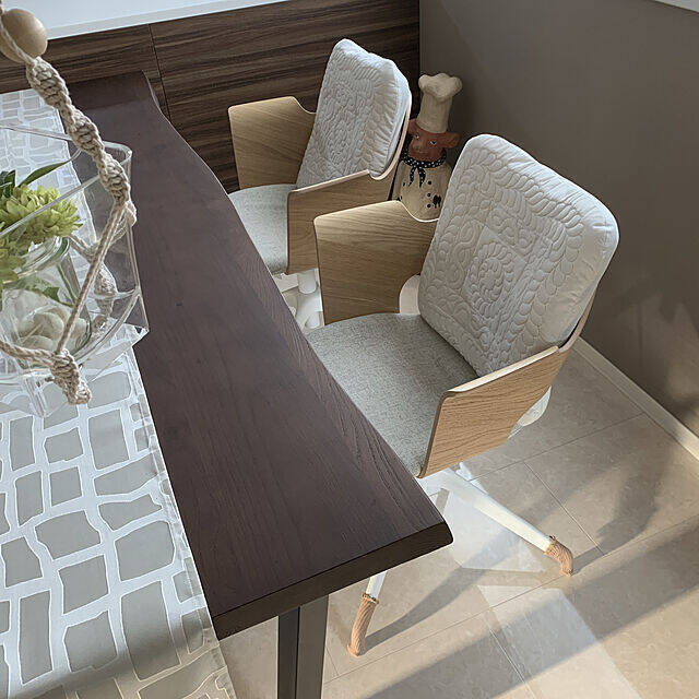 mlf34978さんは、会議用チェアの「フィェルベルゲット」をダイニングチェアとして愛用されていました。会議用には見えないデザイン性で、ダイニングにもなじみそうですね。高反発なので長時間座っても快適に過ごせます。上品な柄のクッションを置かれ、ますます居心地が良さそうです。