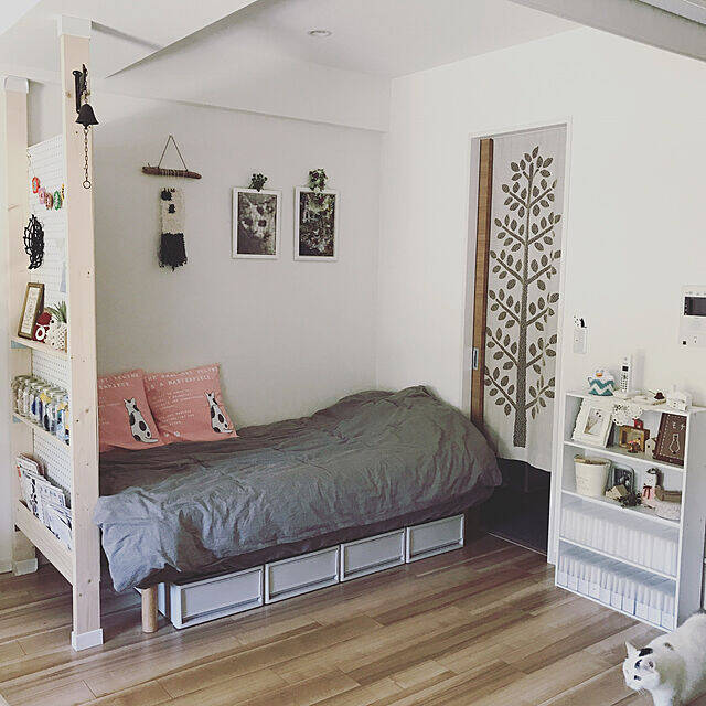少しの工夫で、ベッド下は自分好みにアレンジすることができます。ユーザーさんは衣装ケースにリメイクシートを貼ることで、ケースの中身が見えないようアレンジされています。お気に入りのリメイクシートを貼れば、お部屋のインテリアとしても大活躍してくれますね。