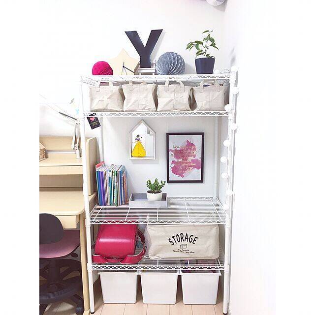 整頓にスチールラックを取り入れていらっしゃったのは、yoshi-piさんです。整理整頓が苦手な娘さんも、スチールラックを設置した事で机周りをすっきり片付けることができたそうですよ♪細かいものは、ダイソーのストレージボックスを活用して収納されています。