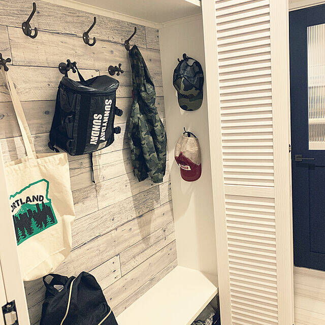「ファミリークローゼットでも、玄関でも、いちいち衣類をハンガーに掛け直す手間が面倒なので、ワンアクションで掛けられるフックを愛用しています。取り付けは全て自分たちで行いました。レインコートや帽子、鍵……何でもすぐ掛けられるので、とても便利です。ただ、下地をもっと増やせばよかったと、少し後悔。」