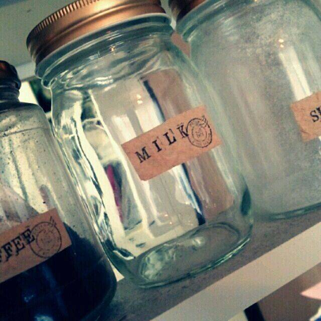 Naoさんは、ラベル作りの材料としてコーヒーフィルターを活用していました。文字などをスタンプして、アンティーク風に仕上げています。ベージュ系の色味が、使い込んだような深みを出してくれます。このラベルを貼るだけで、味のあるアイテムにリメイクすることができそうです。