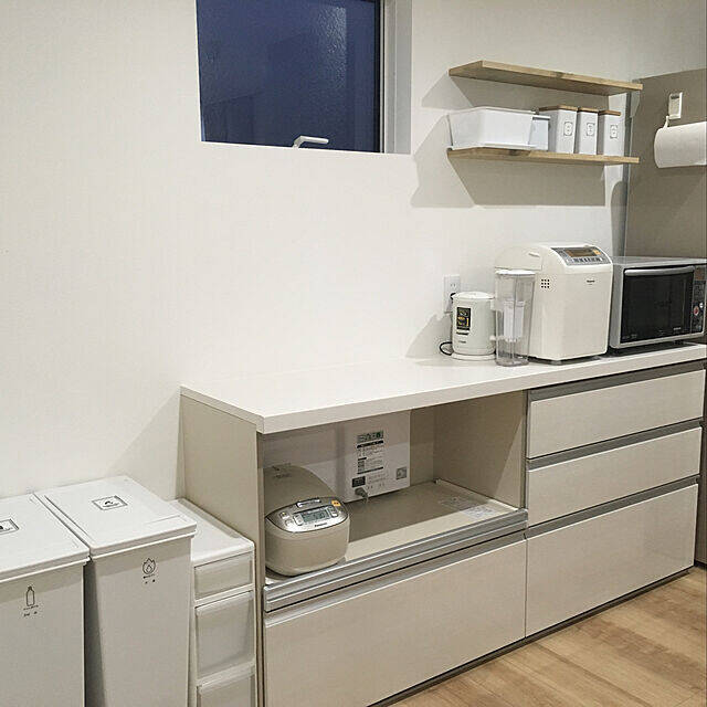 収納スペースには、統一された収納グッズが無駄なくキレイに並ぶtata3_homeさんのお宅。物がすっきりと片付き、生活空間は広々とキープされています。収納グッズは、引出し式が多くそれぞれラベリングされているのも印象的。収納一つひとつにこだわりが感じられます。