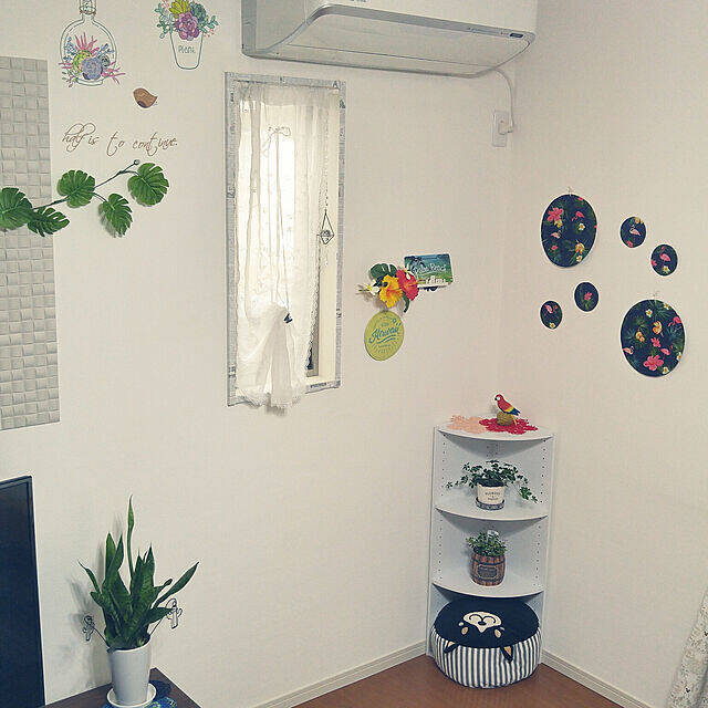 ニトリのコーナーカラーボックスなら、スペースを上手に有効活用できます。uki-uki77さんは、ステッカーでデコレーションされたお部屋の角に置いて、ディスプレイを楽しんでいるそうです。程よいサイズ感と、ラウンドした棚板のおかげで、圧迫感も少なく取り入れやすいアイテムのようです。