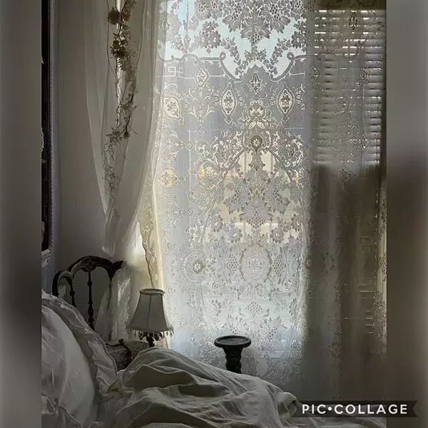 Rinrinfrenchさんが作り上げたベッド周りはロマンティックで幻想的な気配に満ちています。美術工芸品のように繊細で儚げなレースのカーテンが柔らかな光りととけ合い、室内に淡く美しい陰影を生み出しています。お部屋に配置されたシャビーシックなアイテムのそれぞれの存在感を味わえる空間となっています。