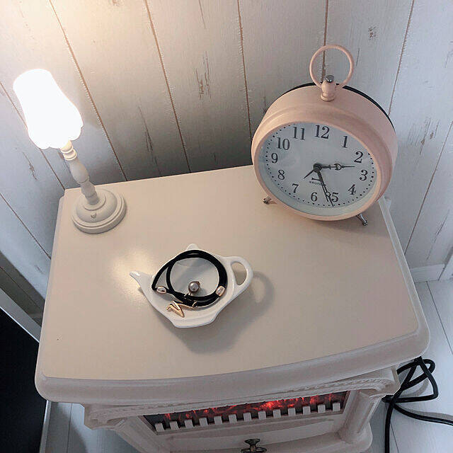 ベッドで読書をするときや就寝前のくつろぎタイムに、ベッドサイドにあると便利なライト。manaさんは、セリアで購入されたアンティーク調のライトをベッドサイドに置かれています。クラシカルな形で、まわりに置かれた小物や暖炉型ファンヒーターとの相性も抜群です!